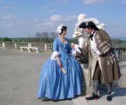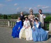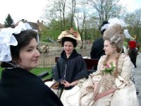 The next morning, at 10, we went to Schloß Niederweiden to attend the re-opening. It's a small and rather plain hunting palace, so there was not much to do but stand around decoratively. Outside, it was cool and windy, but at least the rain was letting up. The following picture was taken in the upstairs room where the frescoes evoke a jungle.