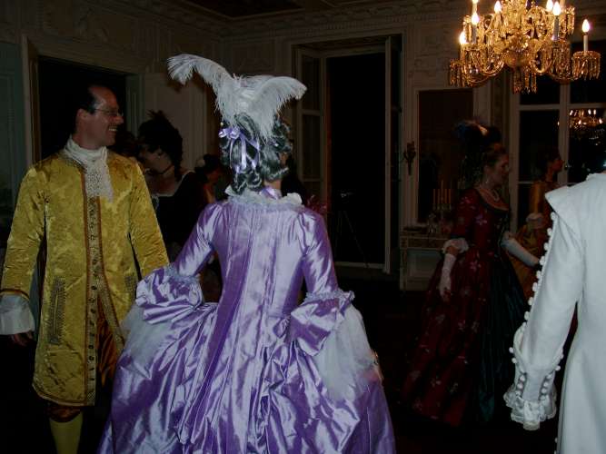 Another disappointment was the singer. Not musically - in that respect she was average. There had been test fittings and phone calls, Lilo had called back a pair of pocket hoops from a borrower, and I had dug out and brought some corsets and a robe to make sure she was dressed in style. But the singer refused to wear anything but the robe itself - although the corsets should have been relatively loose-fitting -, not even pocket hoops and a cap. Without the proper undergarments, the robe hung on her like a sack. The breakfast ladies refused period dress altogether, but since that was off-site, I didn't mind much.