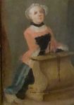 Familienbildnis, 1738. Ein frühes Beispiel uniformer Kleidung, sogar bei der Bettlägerigen. Schürzen mit Latz siehr man in Sammarei auch bei den Modischen nicht allzu oft. 1768