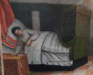Man macht sich eher selten Gedanken darüber, wie sich die Leute früher gebettet haben. Dabei ist es schon auffällig, wie sehr sich das Bettenmachen noch heute von Land zu Land unterscheidet. Da muß eine ziemlich lange Tradition dahinterstecken. Zeitgenössische Abbildungen gibt es sonst nur unter dem Motto "Besuch bei der Wöchnerin" (selten) und bei erotischen Szenen (sehr häufig, aber meist sehr gehoben möbliert).