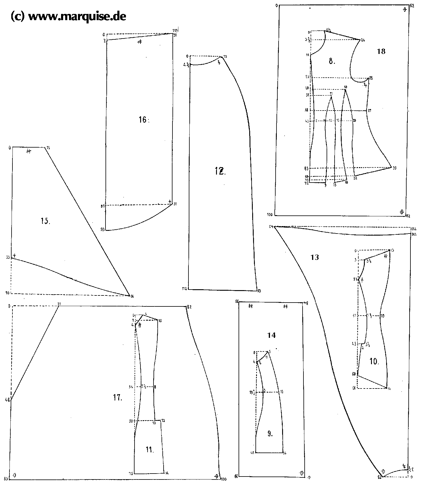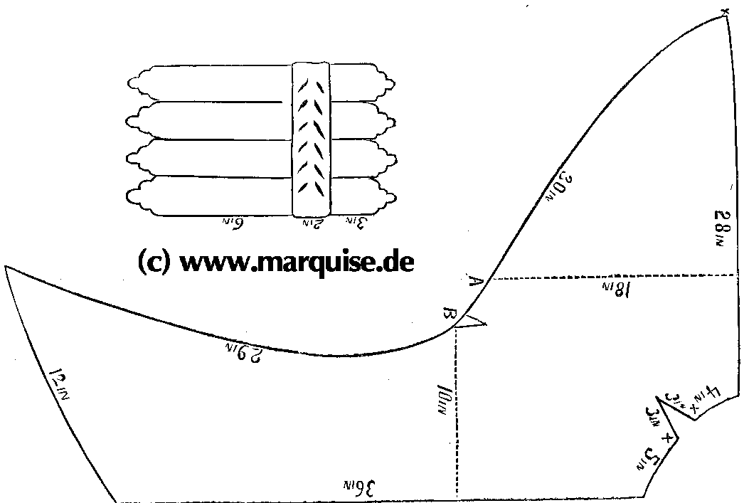 finished garment to the right. Up to 1877, measurements are in inches, whereas