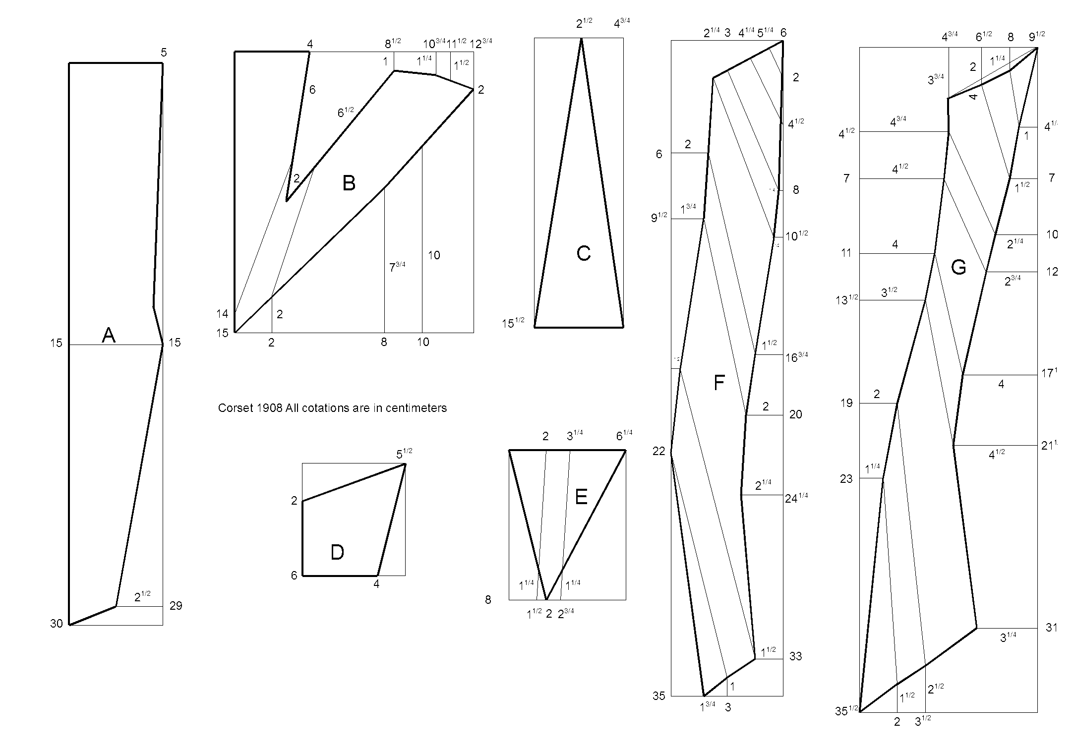 The patterns without a year are from a 1908 book and not for a certain design, but rather generic pieces of clothing. The rest is up to you. Instructions from the 1908 book are here. If not stated otherwise, the skirt hip width is 98, waist 60 for those generic patterns.