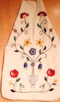 So I made a pair of pockets, the pattern for which can be found in Arnold, and embroidered them with a design that I put together out of the Arnold pattern, some V&A textiles, and traditional Bavarian designs.